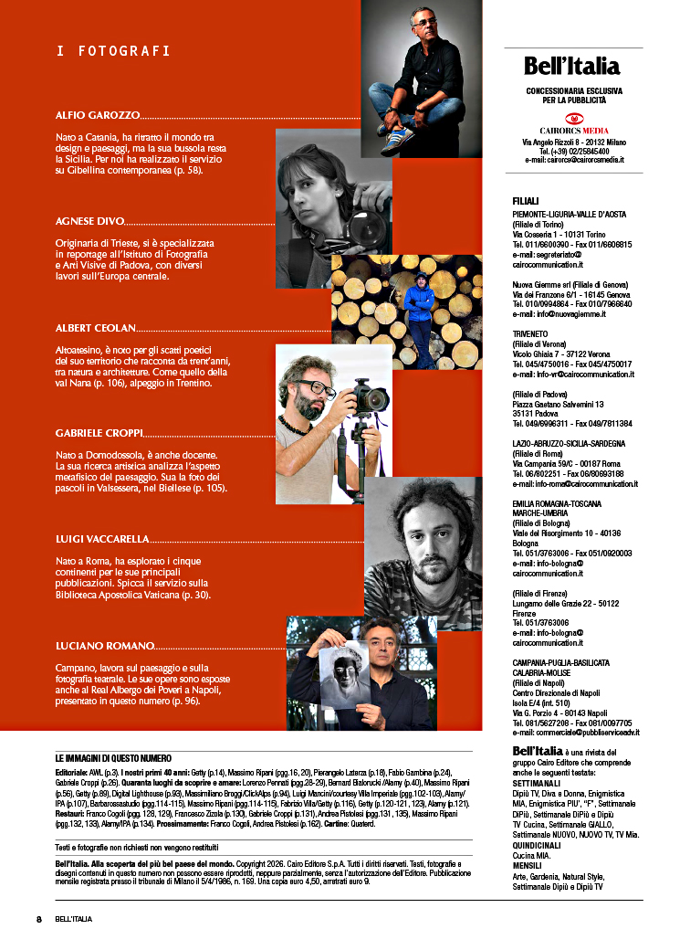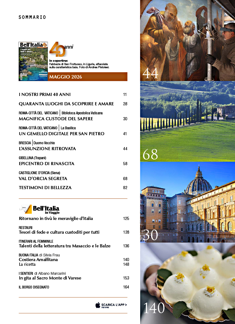Bell'Italia è il mensile che racconta le bellezze del nostro Paese, con reportage, itinerari, foto suggestive e storie affascinanti. Città e borghi, chiese e palazzi, mare e mantagne, arte e natura.
