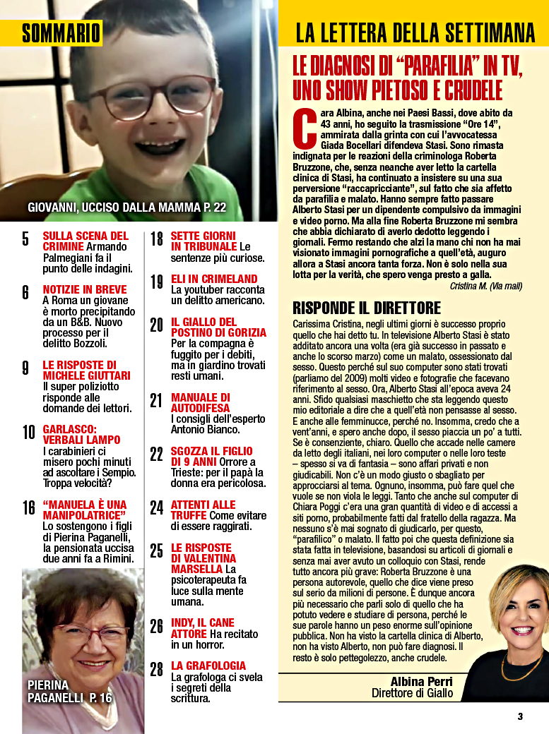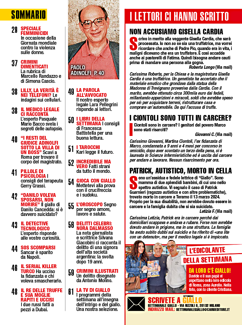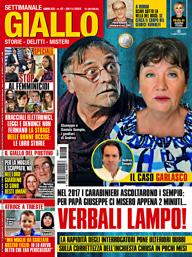 Settimanale Giallo con inchieste e approfondimenti analizza e fa luce sulle storie, i delitti e i misteri seguiti da tutti gli italiani.