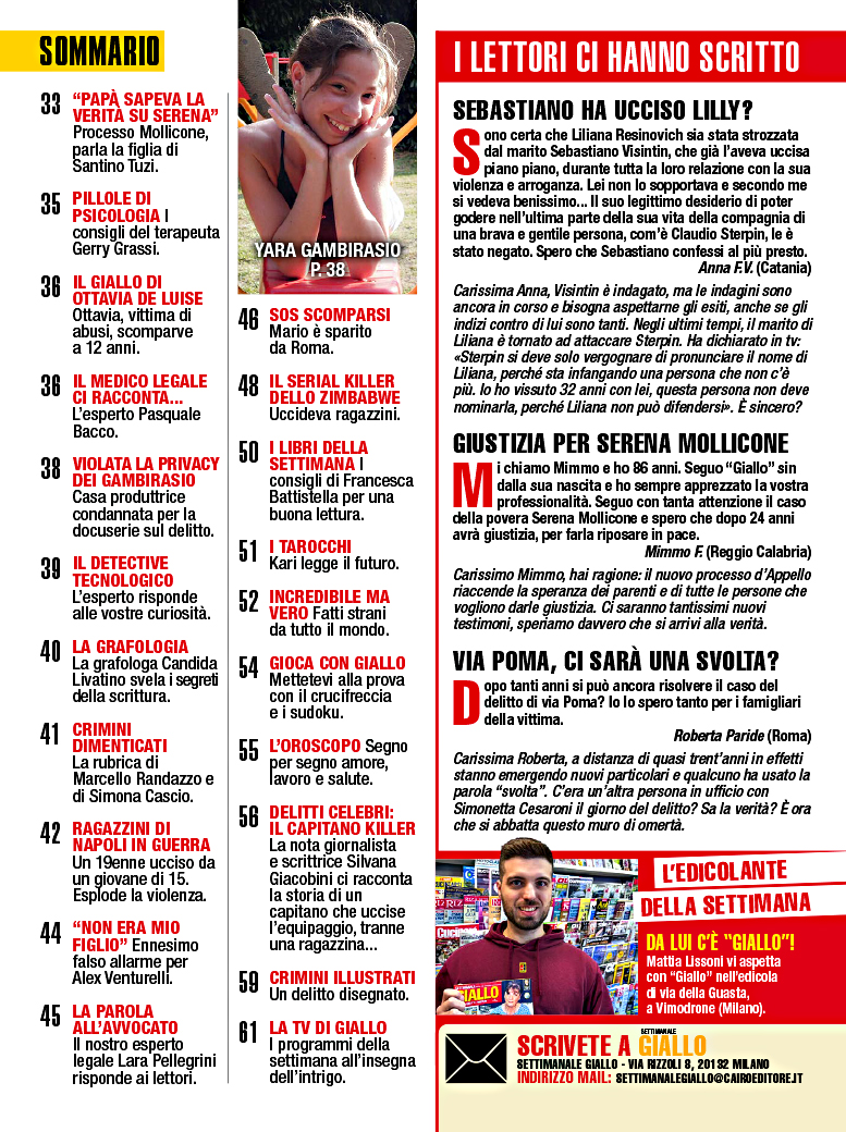 Settimanale Giallo con inchieste e approfondimenti analizza e fa luce sulle storie, i delitti e i misteri seguiti da tutti gli italiani.