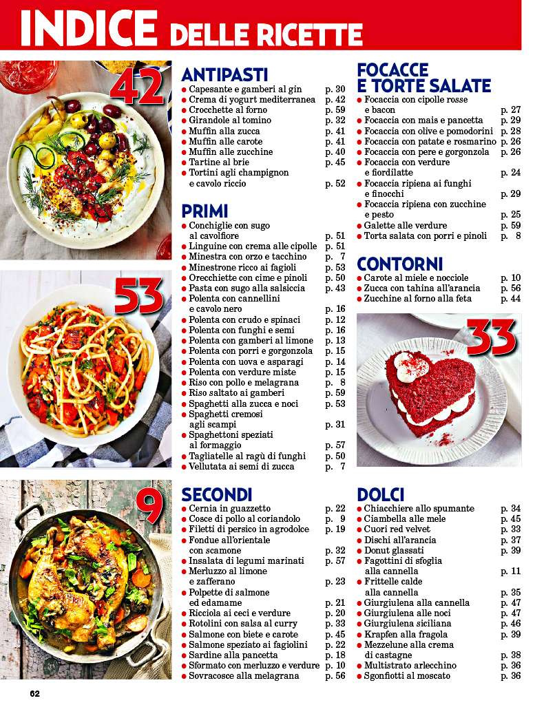 Una preziosa rivista da leggere e conservare con più di 70 proposte in ogni numero: dai piatti di stagione, ai menù più ricercati, a tanti gustosi suggerimenti su come evitare gli sprechi. In più, approfondimenti sulla cucina italiana ed esotica, e il meglio della gastronomia regionale e internazionale.