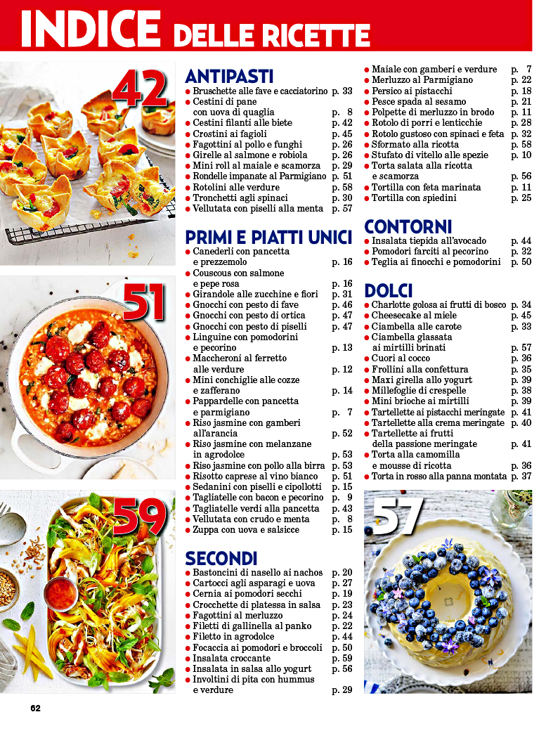 Una preziosa rivista da leggere e conservare con più di 70 proposte in ogni numero: dai piatti di stagione, ai menù più ricercati, a tanti gustosi suggerimenti su come evitare gli sprechi. In più, approfondimenti sulla cucina italiana ed esotica, e il meglio della gastronomia regionale e internazionale.