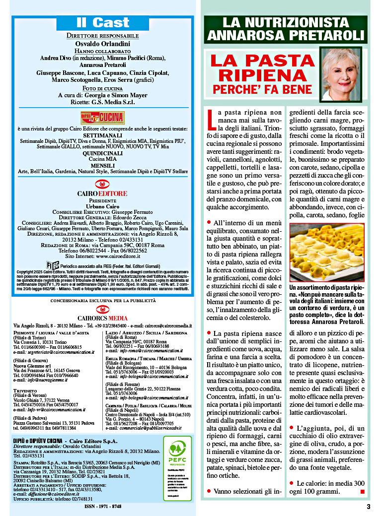 In ogni numero trovi le ricette della nostra tradizione: antipasti, primi piatti, secondi di carne e di pesce e dolci.
