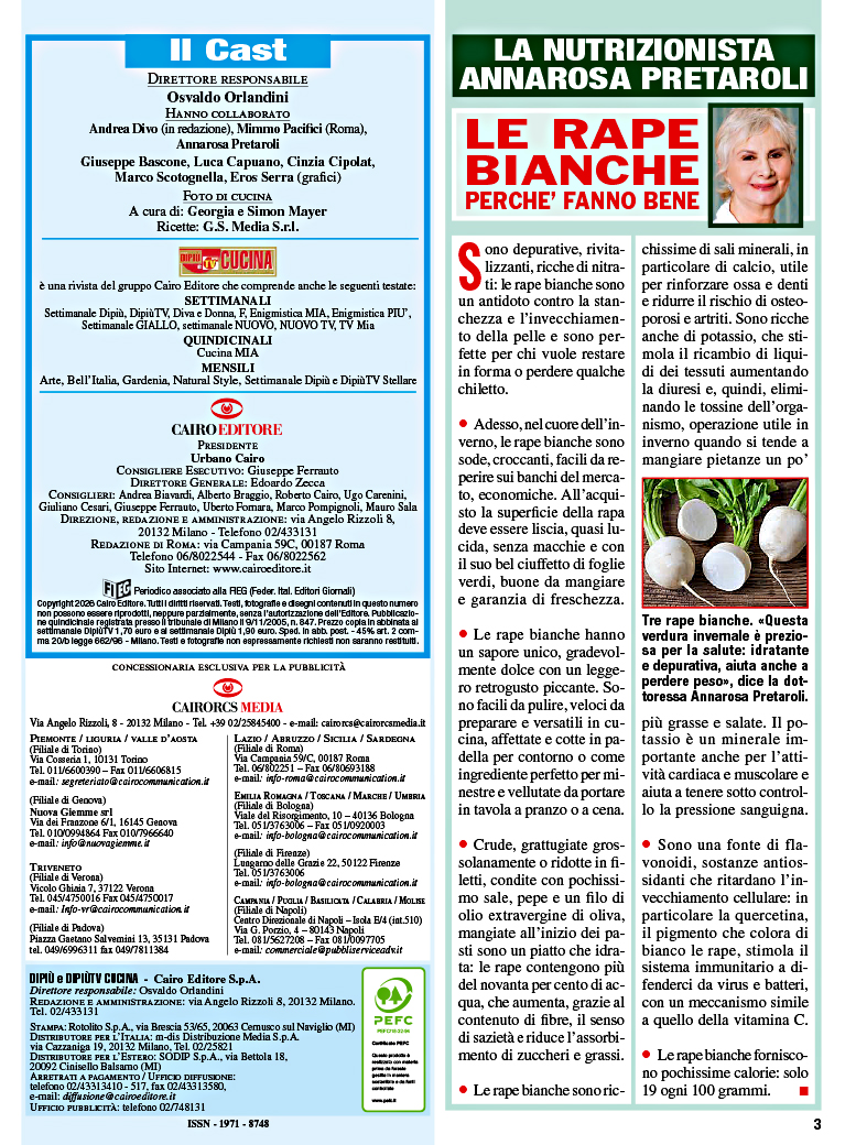 In ogni numero trovi le ricette della nostra tradizione: antipasti, primi piatti, secondi di carne e di pesce e dolci.