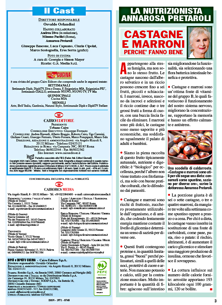 In ogni numero trovi le ricette della nostra tradizione: antipasti, primi piatti, secondi di carne e di pesce e dolci.