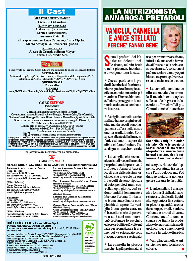 Ma trovi anche i piatti leggeri e vegetariani, i menù delle feste e le interviste ai personaggi famosi con i loro consigli in cucina.
