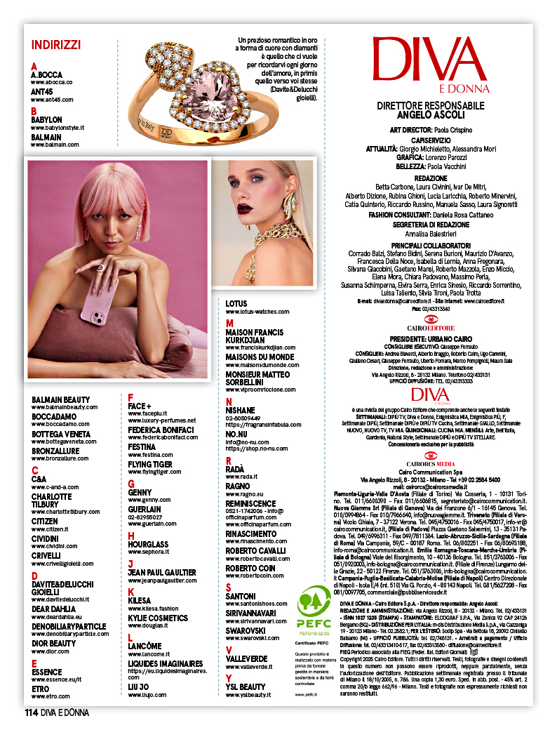 Ogni settimana notizie, attualità, moda e bellezza, rivisitate in una formula nuova e originale, perché in ogni donna c’è una diva e in ogni diva c’è una donna.