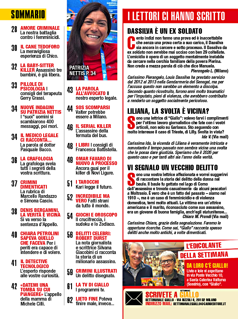 Settimanale Giallo con inchieste e approfondimenti analizza e fa luce sulle storie, i delitti e i misteri seguiti da tutti gli italiani.