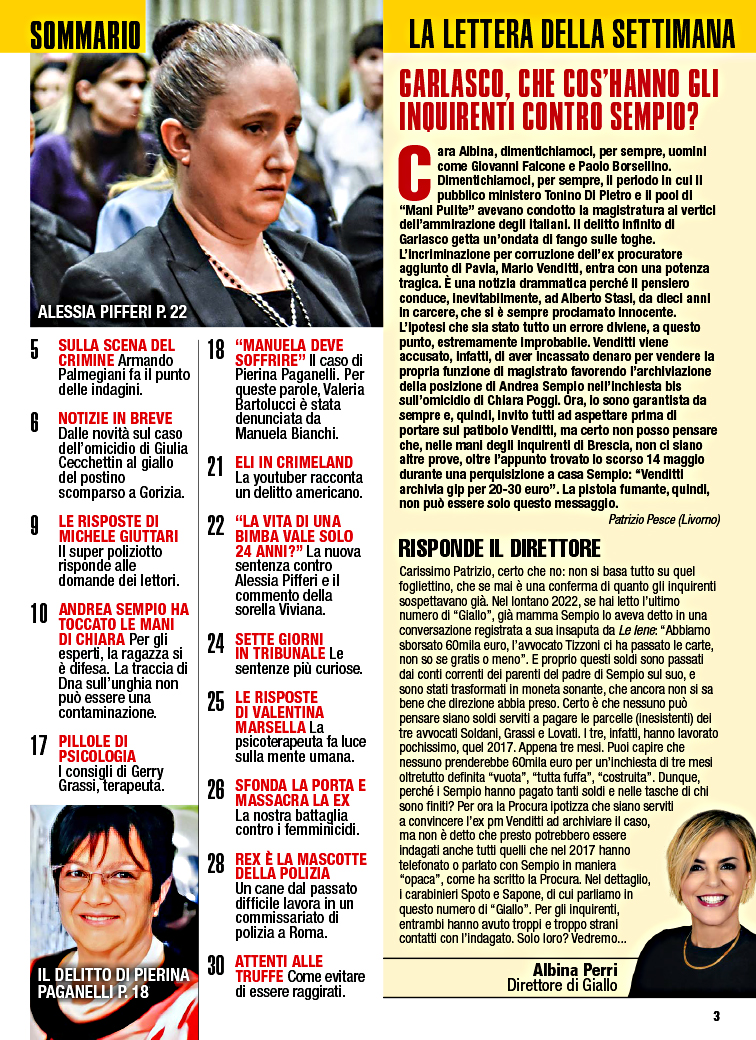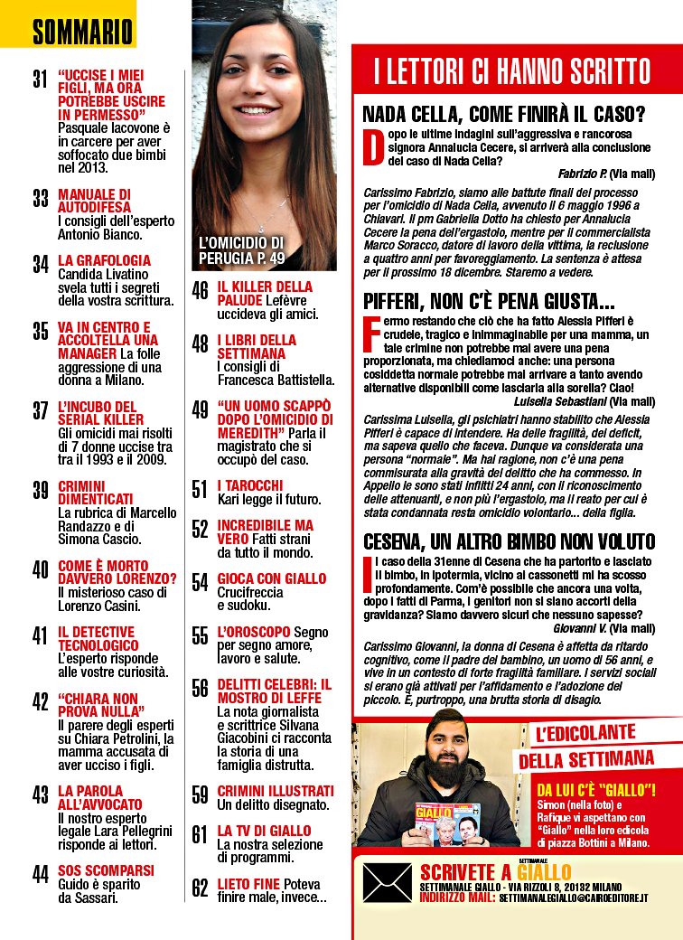 Settimanale Giallo con inchieste e approfondimenti analizza e fa luce sulle storie, i delitti e i misteri seguiti da tutti gli italiani.