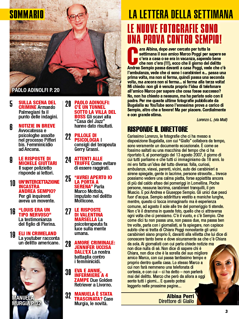 Settimanale Giallo con inchieste e approfondimenti analizza e fa luce sulle storie, i delitti e i misteri seguiti da tutti gli italiani.