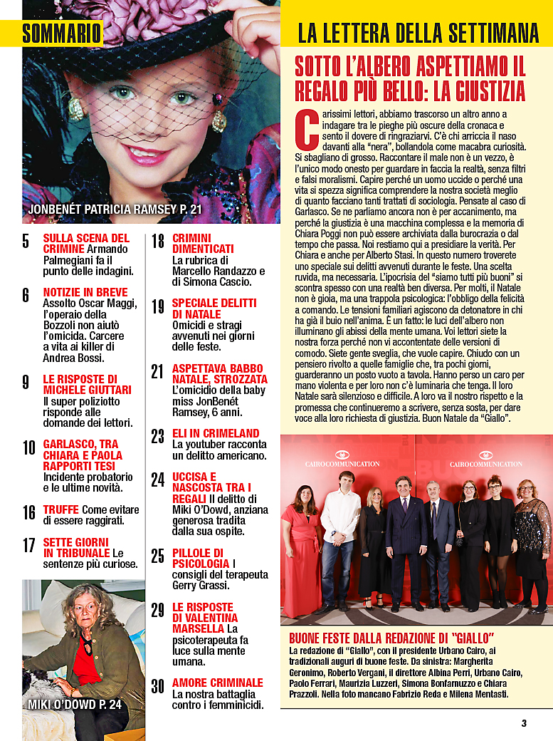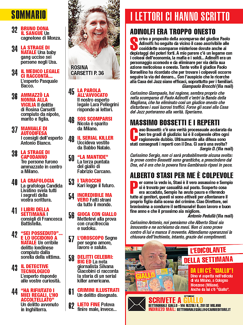 Settimanale Giallo con inchieste e approfondimenti analizza e fa luce sulle storie, i delitti e i misteri seguiti da tutti gli italiani.